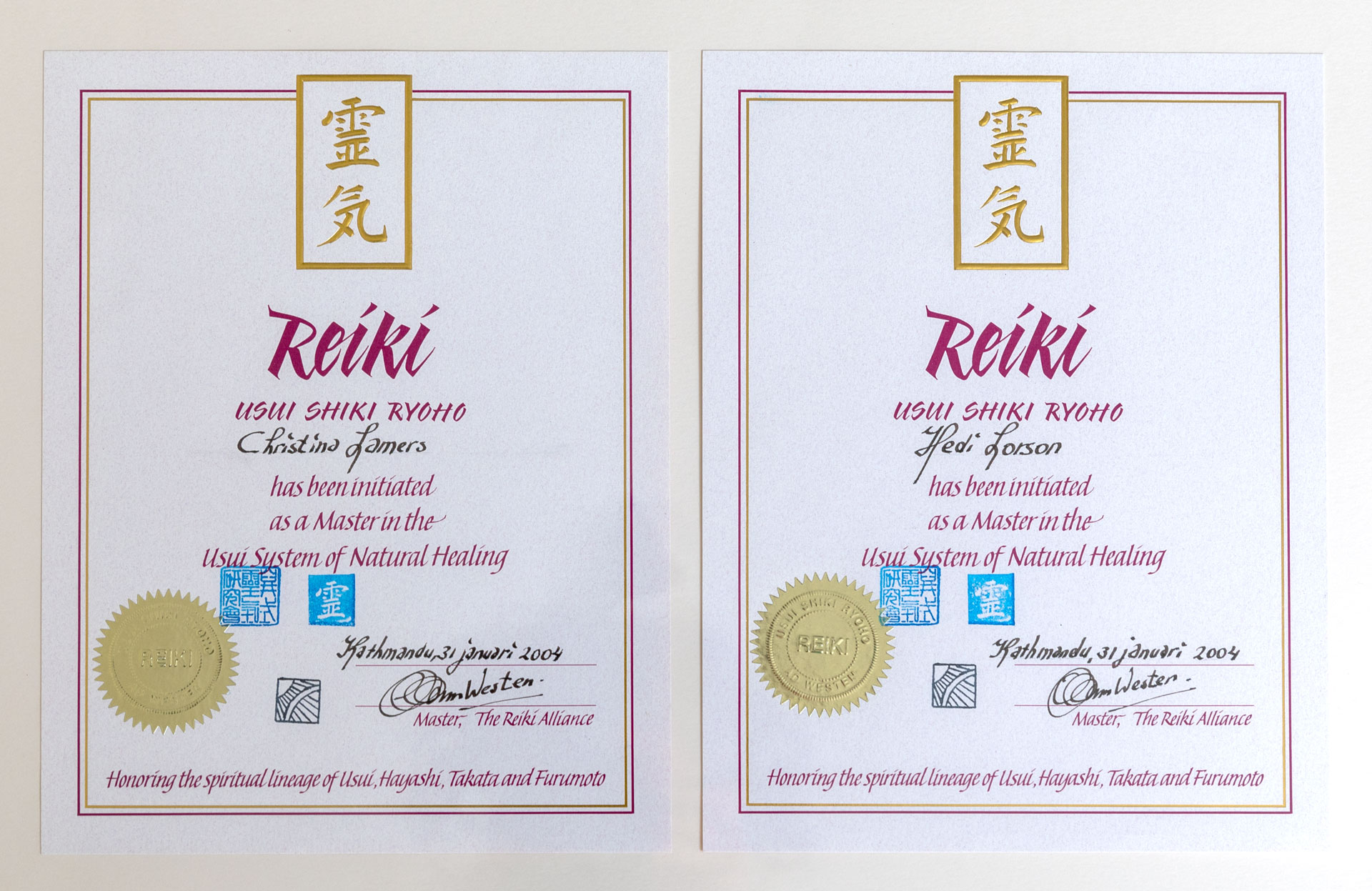 Nur der Reiki-Meister hat das Recht, das Wissen und die Befähigung Reiki 1 und Reiki 2 - Seminare zu leiten und die Einstimmungen vorzunehmen. Die Ausbildung zum Meister nach den Bedingungen von „The Reiki-Alliance“ dauert, abhängig von den persönlichen und fachlichen Kompetenzen, mindestens ein Jahr.